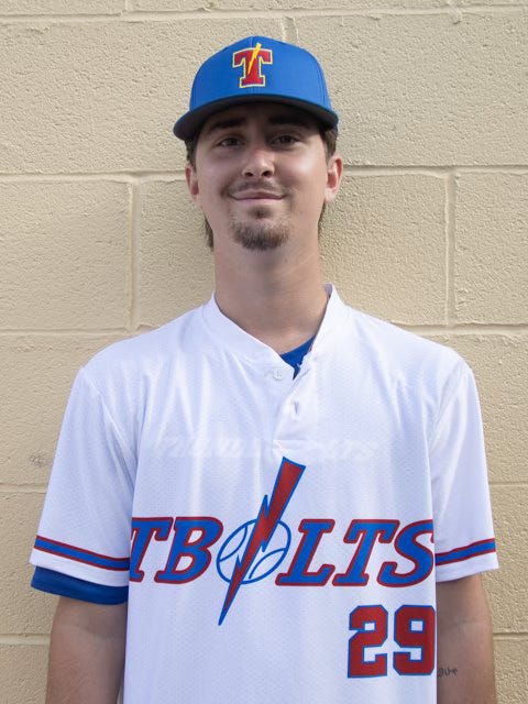 TBolts pitcher #29 Gabe Wheeler delivered four scoreless innings Friday night, maintaining his perfect 0.00 ERA and position on the Cal Ripken pitching ERA leader board.